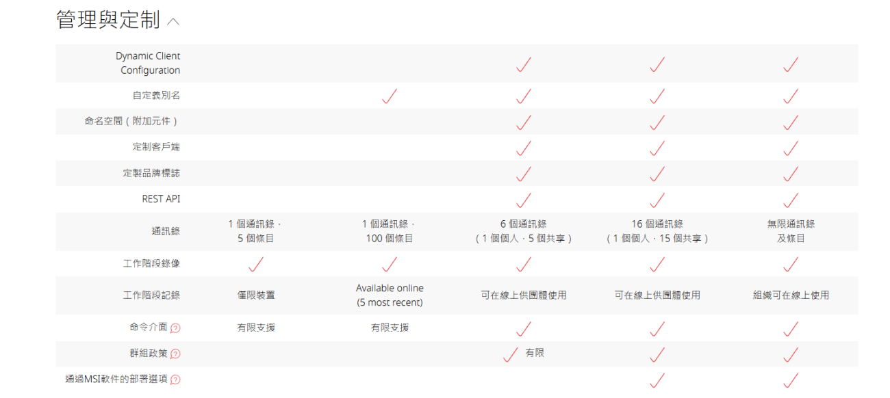 個人版 solo ,標準版 Standard ,專業版 Advanced |