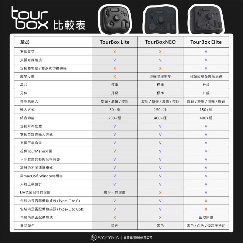 輕鬆入手最新款的TourBox Lite,讓複雜變簡單。繪畫、剪輯、攝影後製,手到擒來 。單手免視操作,簡易佈局,提供超過50種操作。升級桌面配置,創作、工作,從未如此趁手!